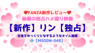 【MSODN-048】近日デビュー予定のリンさんによる独占新作。体験入店時の秘蔵ハメ撮り映像を収録。上品で癒し系、巨乳Fカップの色気と密着施術が堪能できる注目作をレビュー。
